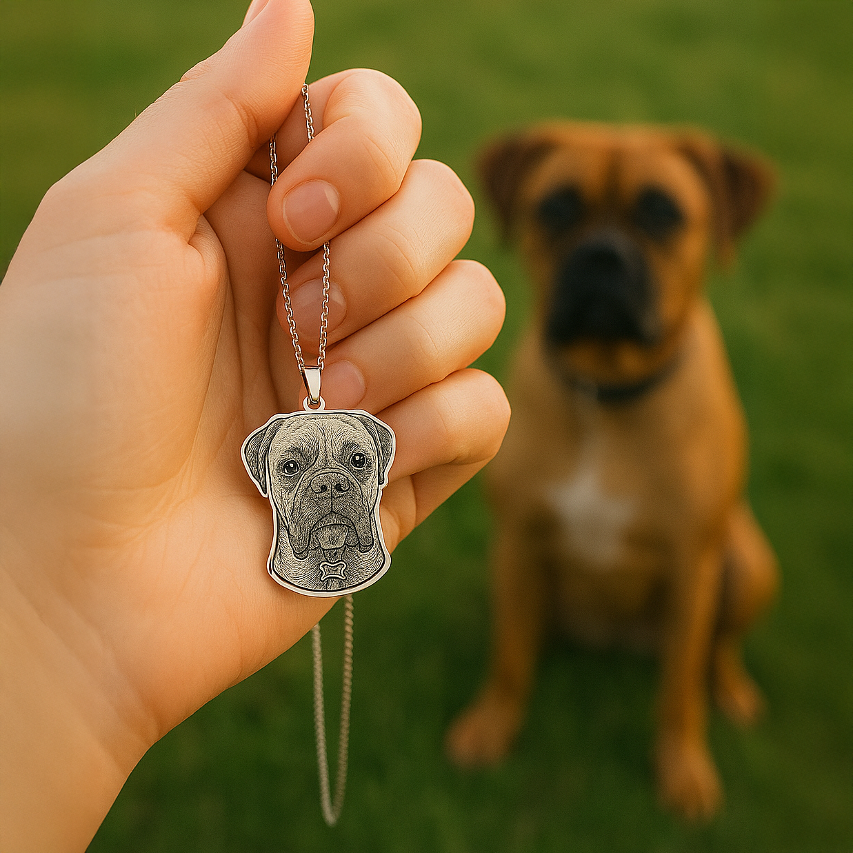 But what truly completed her look? A life-like Silvercut necklace featuring her pup's adorable face - the perfect accessory to tie the whole concept together.