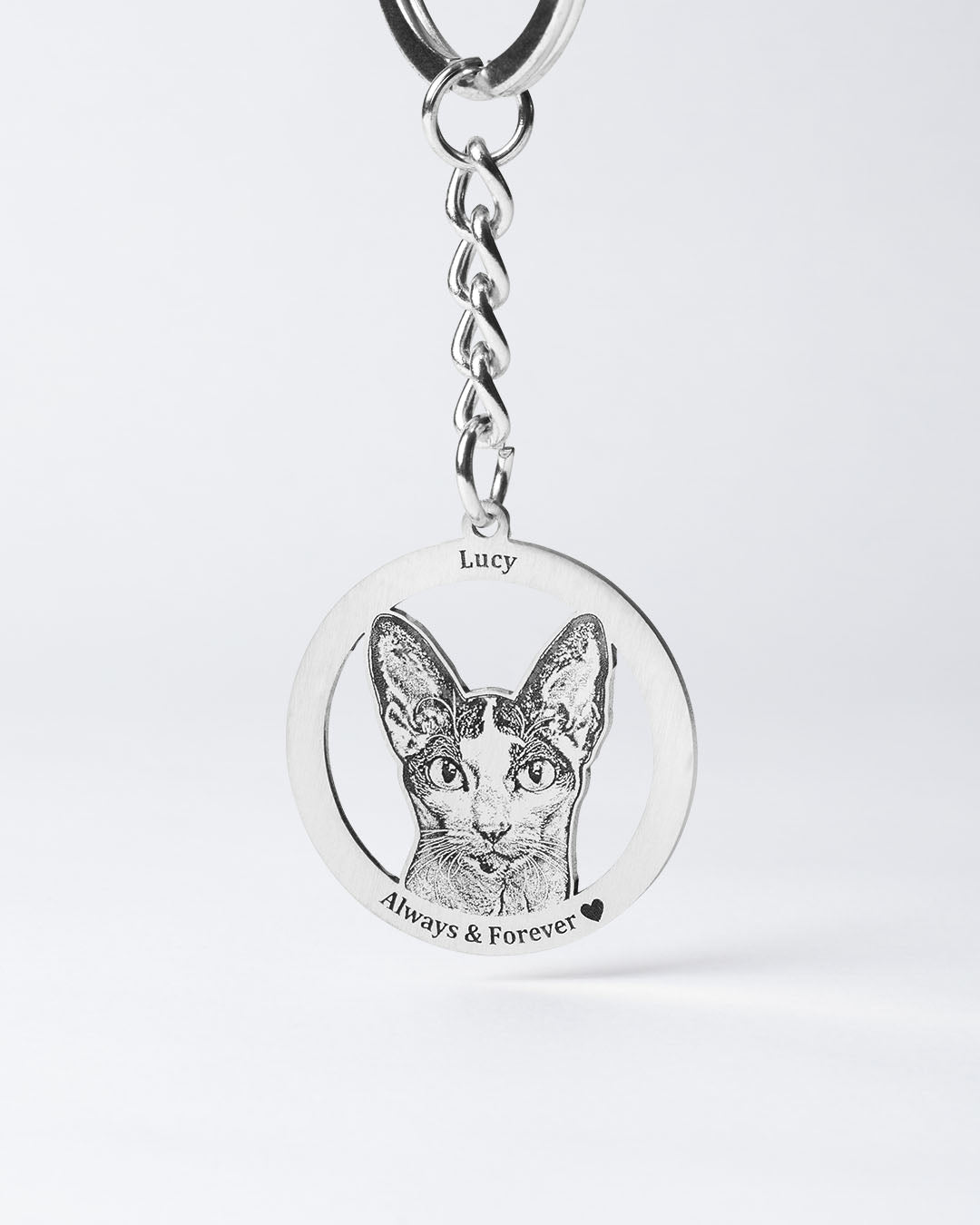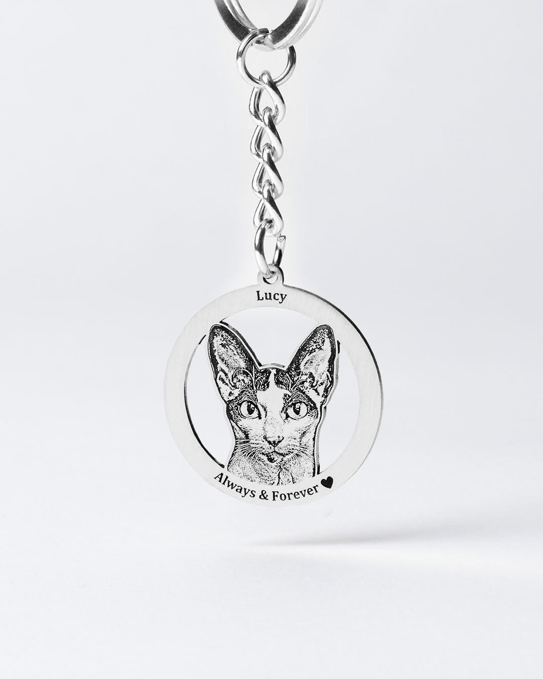 "I'm over the moon with my new personalized dog keychain! It's been tough not seeing my dog's face every day.."