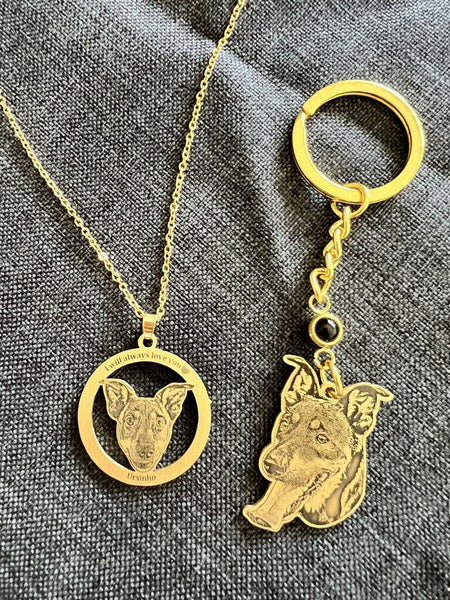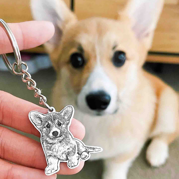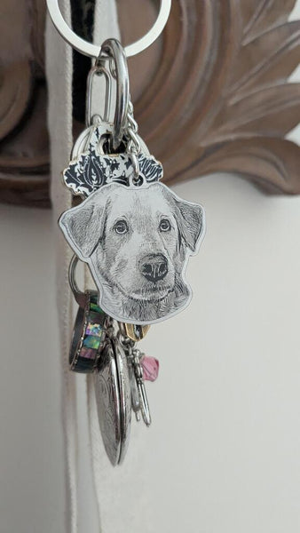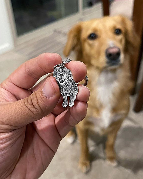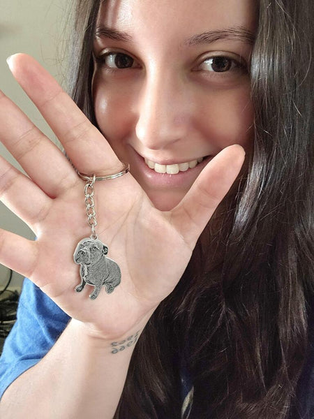 "I'm over the moon with my new personalized dog keychain! It's been tough not seeing my dog's face every day.."