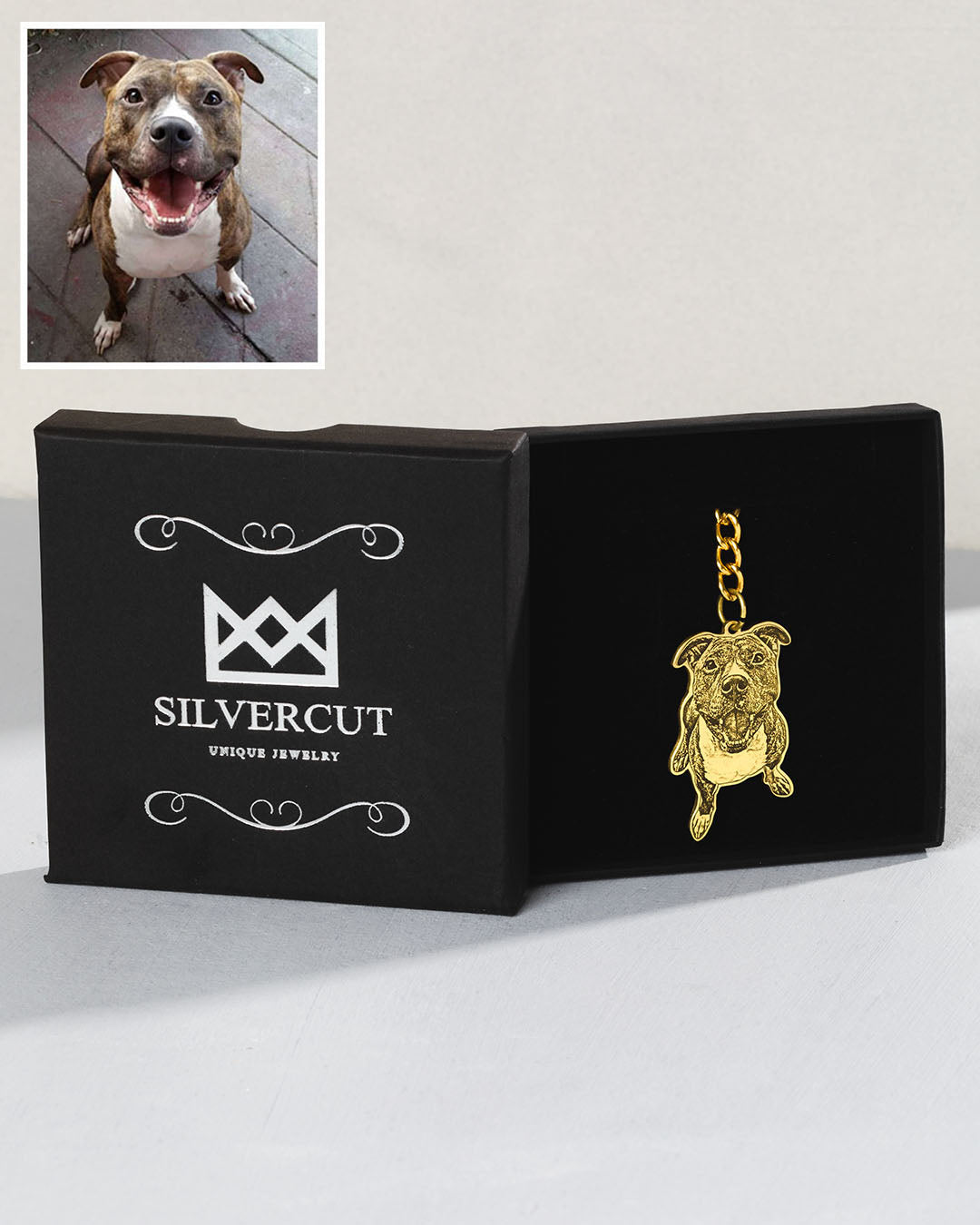 "I'm over the moon with my new personalized dog keychain! It's been tough not seeing my dog's face every day.."