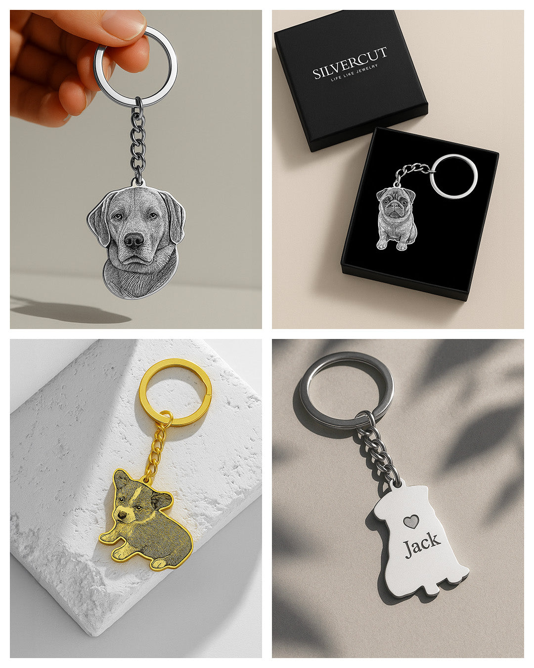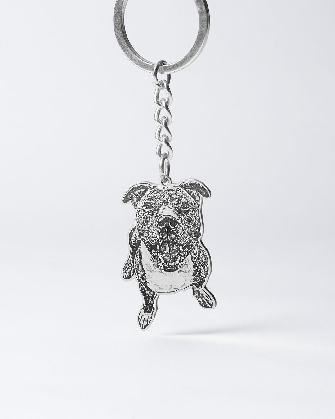 "I'm over the moon with my new personalized dog keychain! It's been tough not seeing my dog's face every day.."