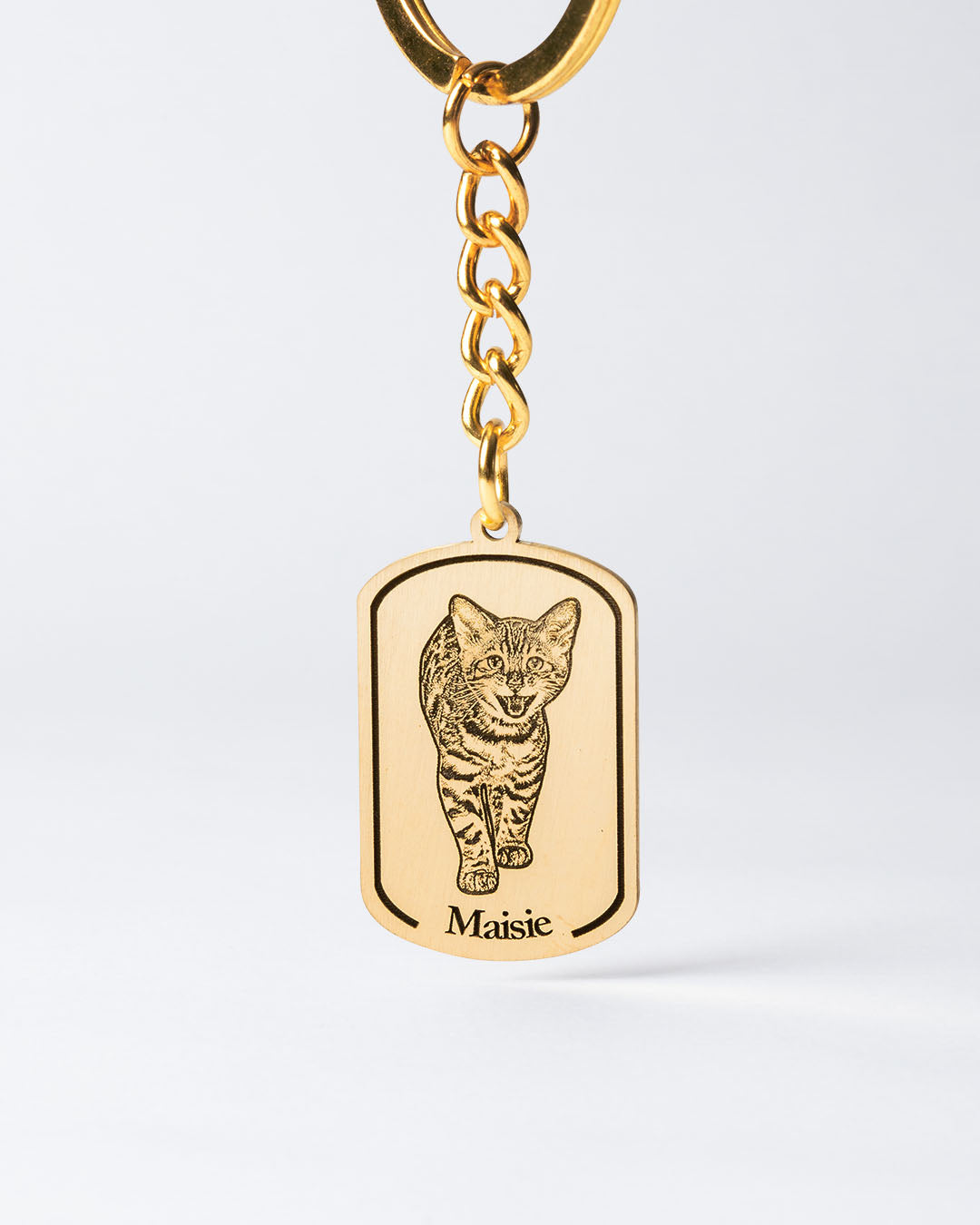 "I'm over the moon with my new personalized dog keychain! It's been tough not seeing my dog's face every day.."